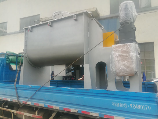 臥式螺帶混料機(jī)的結(jié)構(gòu)是由U形殼體、螺帶攪拌放入葉片和傳動(dòng)部件組成的,螺帶狀葉片是雙層內(nèi)外結(jié)構(gòu),然后,就由外層螺旋將物料從兩側(cè)向中間匯集,內(nèi)層螺旋將物料從中間向兩側(cè)輸送,形成對(duì)流混合。