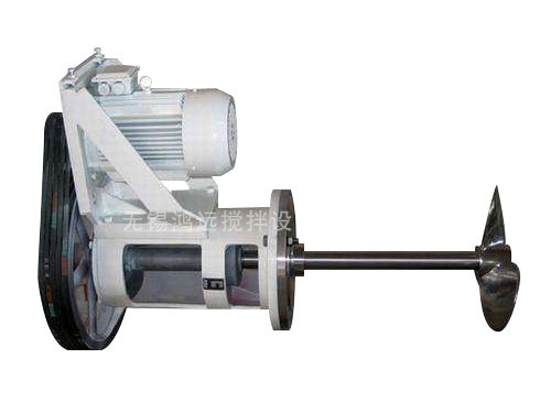 驅(qū)動(dòng)裝置采用普通電機(jī)或防爆電機(jī)直接通過(guò)皮帶輪驅(qū)動(dòng)裝置與攪拌軸聯(lián)接。攪拌軸由雙向推力軸承和水潤(rùn)滑滑動(dòng)軸承支承,具有足夠的強(qiáng)度和剛度,并具有好的穩(wěn)定性。